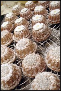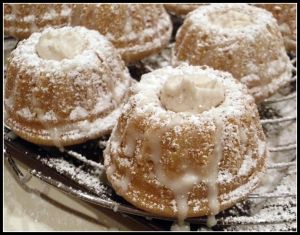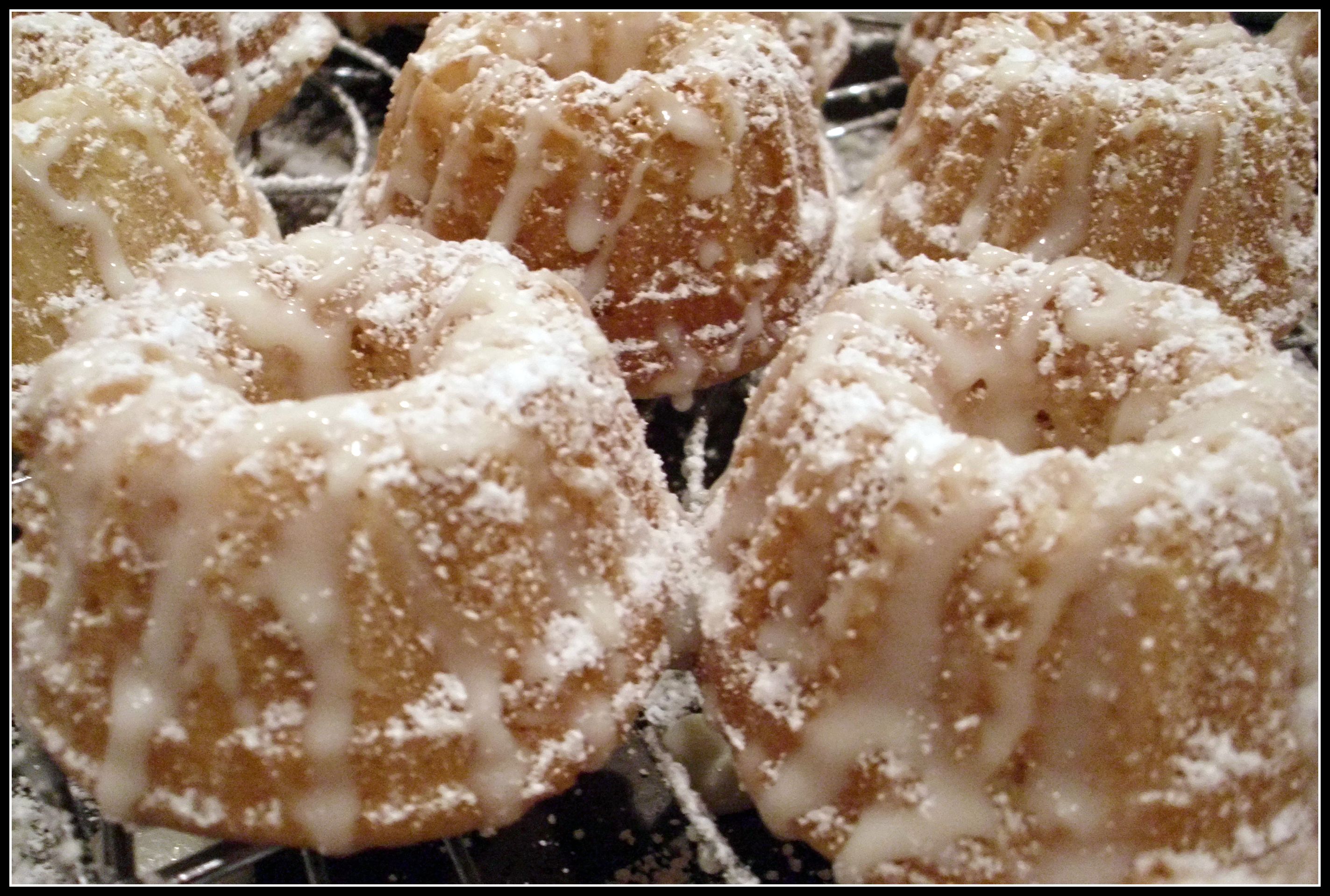 - When cool, dust the mini-bundt cakes with powdered sugar.