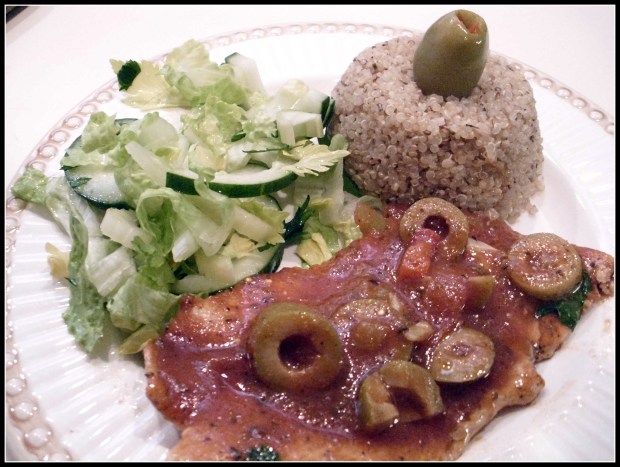 Since starting my healthy lifestyle, I have not made this for my family. So, I decided to take my favorite flavors from the traditional dish and use boneless chicken breast instead of the canned corned beef, skip the diced potatoes and served my dish with herbed quinoa and a green salad.