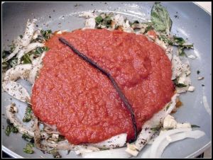 • Stir in marinara sauce and Vanilla Bean and cook for 5 minutes.